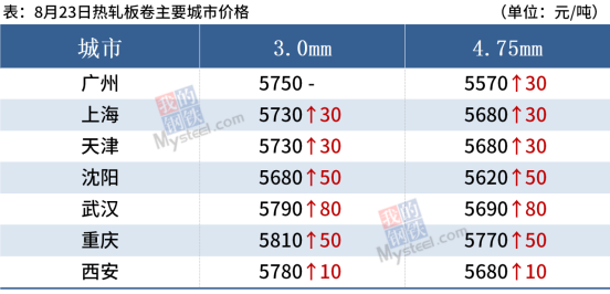 熱軋板卷:8月23日,全國24個主要城市4.75mm熱軋板卷均價5714元/噸,較上個交易日上漲40元/噸。今日黑色商品期貨市場區間震蕩運行,現貨市場早盤報價小幅探漲,漲后市場成交尚可,盤中價格繼續走強,但午后隨著盤面回落,現貨市場交投氛圍開始轉淡,商家回吐部分午后漲幅。目前市場商家庫存壓力不大,區別于以往的是,近期庫存并不是集中在大戶手中而是分散在整個市場,導致每家都有,但每家庫存都不多,所以商家庫存壓力不大挺價意愿較強,低位一定支撐,加上即將進入九月份需求有望回升,對行情仍持樂觀態度,預計24日熱軋板卷價格或將偏強震蕩運行。