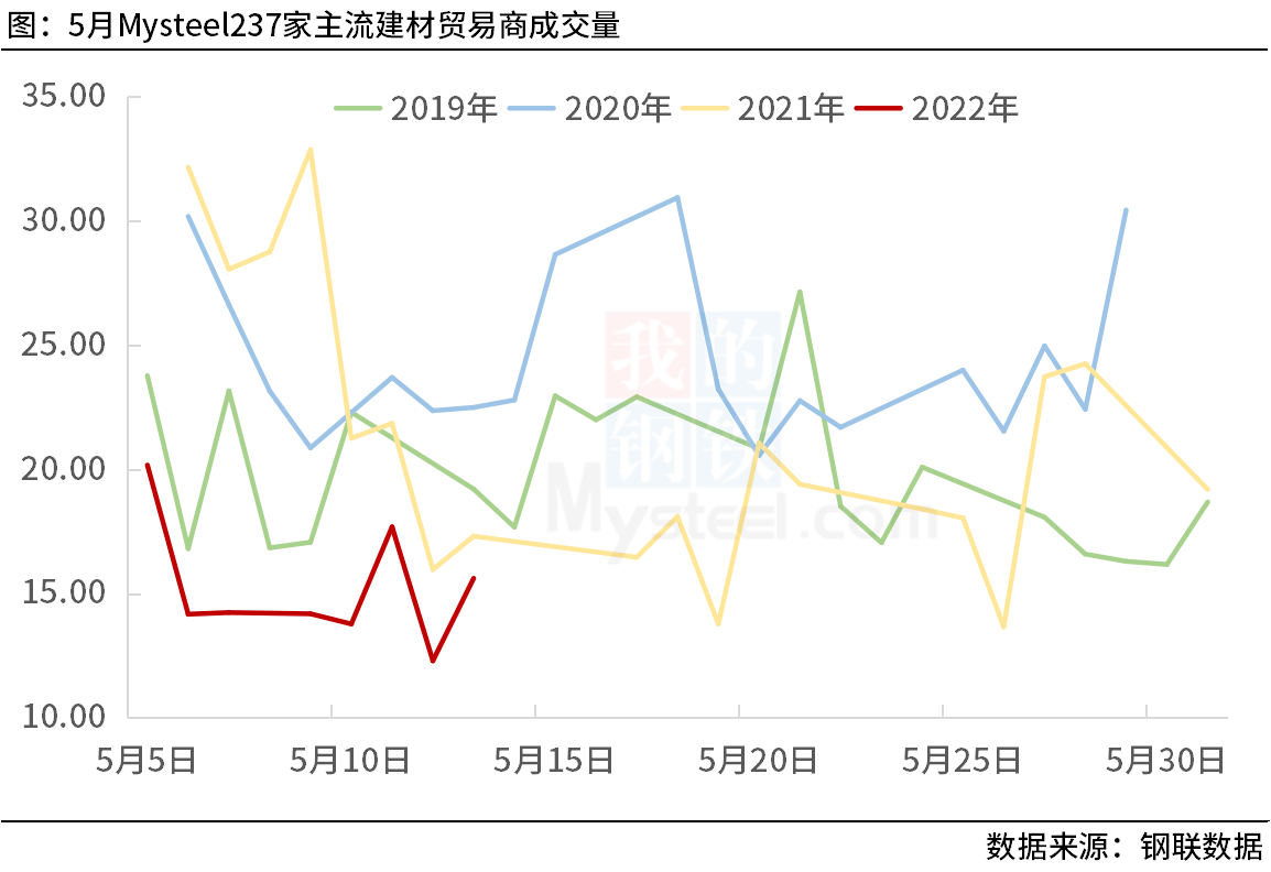 徐向春:4月作為鋼市傳統需求旺季,今年全國疫情多點散發,在物流不暢、部分工廠工地停工影響下,經濟活動受到很大影響。據媒體報道,4月份汽車產量210.5萬輛,同比降46.1%,產量創十年同期新低。4月份百強房企銷售額同比下降58.6%。