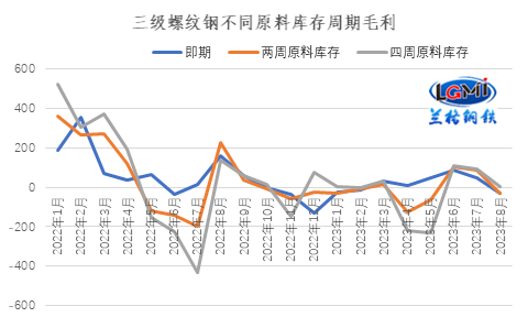 圖3 主要鋼材品種(四周原料庫(kù)存)毛利水平