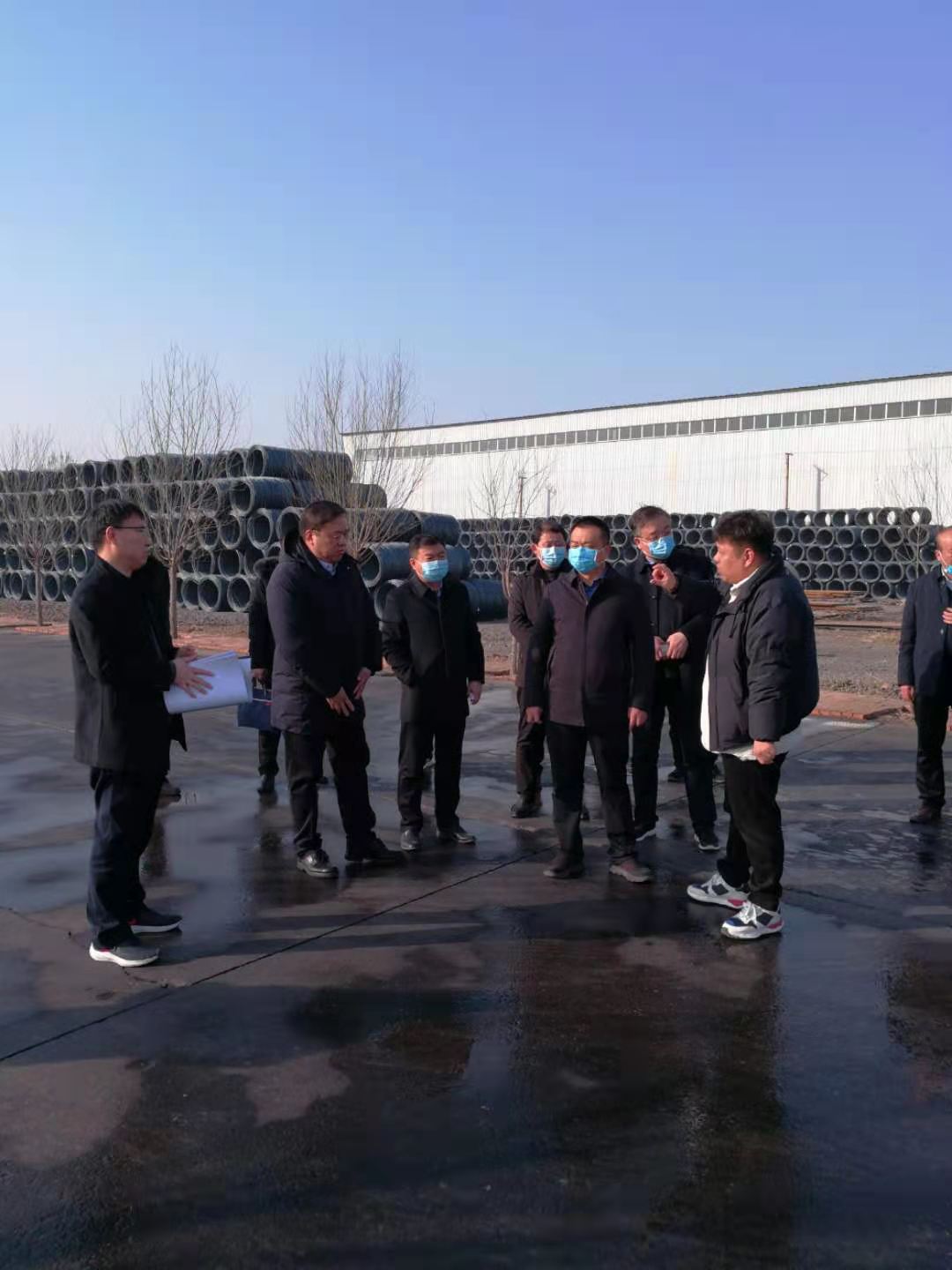 2021年2月3日上午,安陽市殷都區區委書記、區長雷鳴,區委副書記王磊等領導蒞臨希旺鋼鐵公司北蒙倉庫調研指導工作,希旺鋼鐵董事長張關華先生熱情接待了來訪團,在董事長張關華陪同下對我公司倉儲現狀及辦公環境、企業發展等方面進行了全面了解.